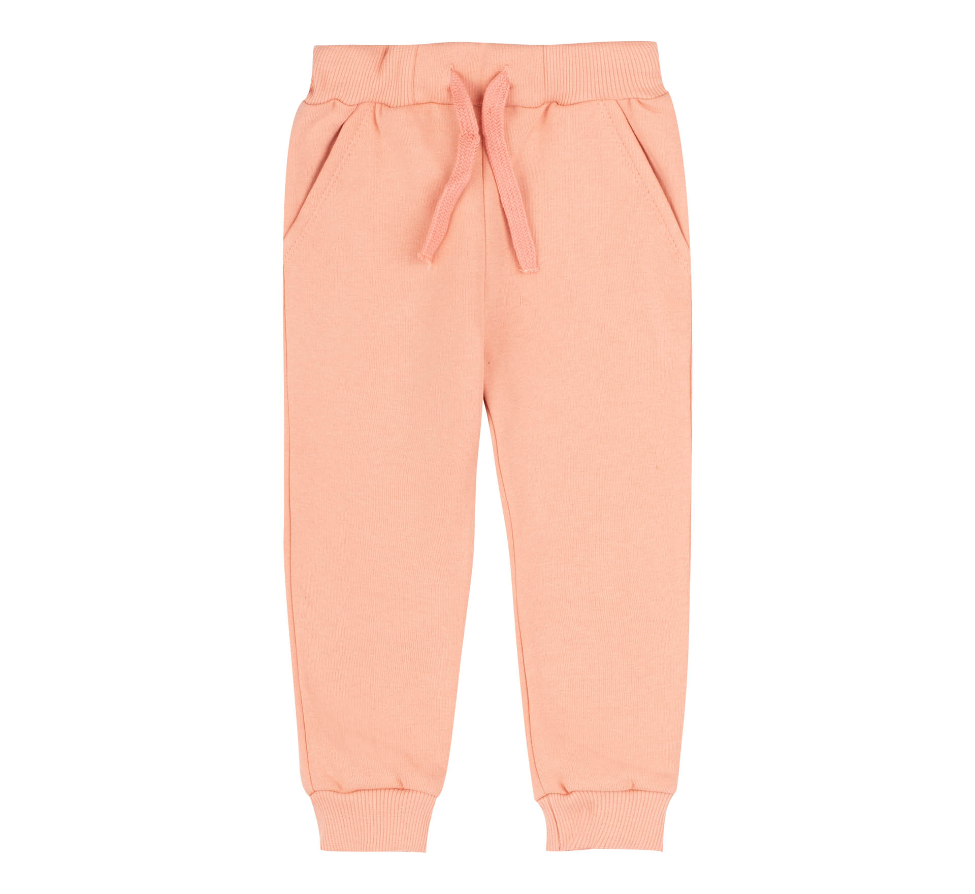 Детские универсальные персиковые штаны. Сшитые из мягкого теплого трикотажа. Пояс и манжеты по краю выполнены из эластичного трикотажа в рубчик. По бокам удобные карманы с косым входом. На поясе декоративный шнурочок. Удобные и стильные трикотажные детские штаны на осень.