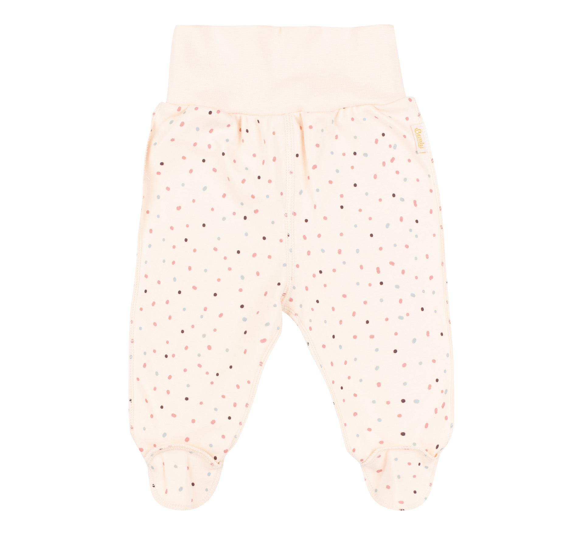 Хлопковые ползунки в точечку с внешними швами, чтобы малышу ничего не мешало. Пошиты из натуральной нежной к коже малыша ткани средней плотности. Ножки закрыты. Пояс широкий.