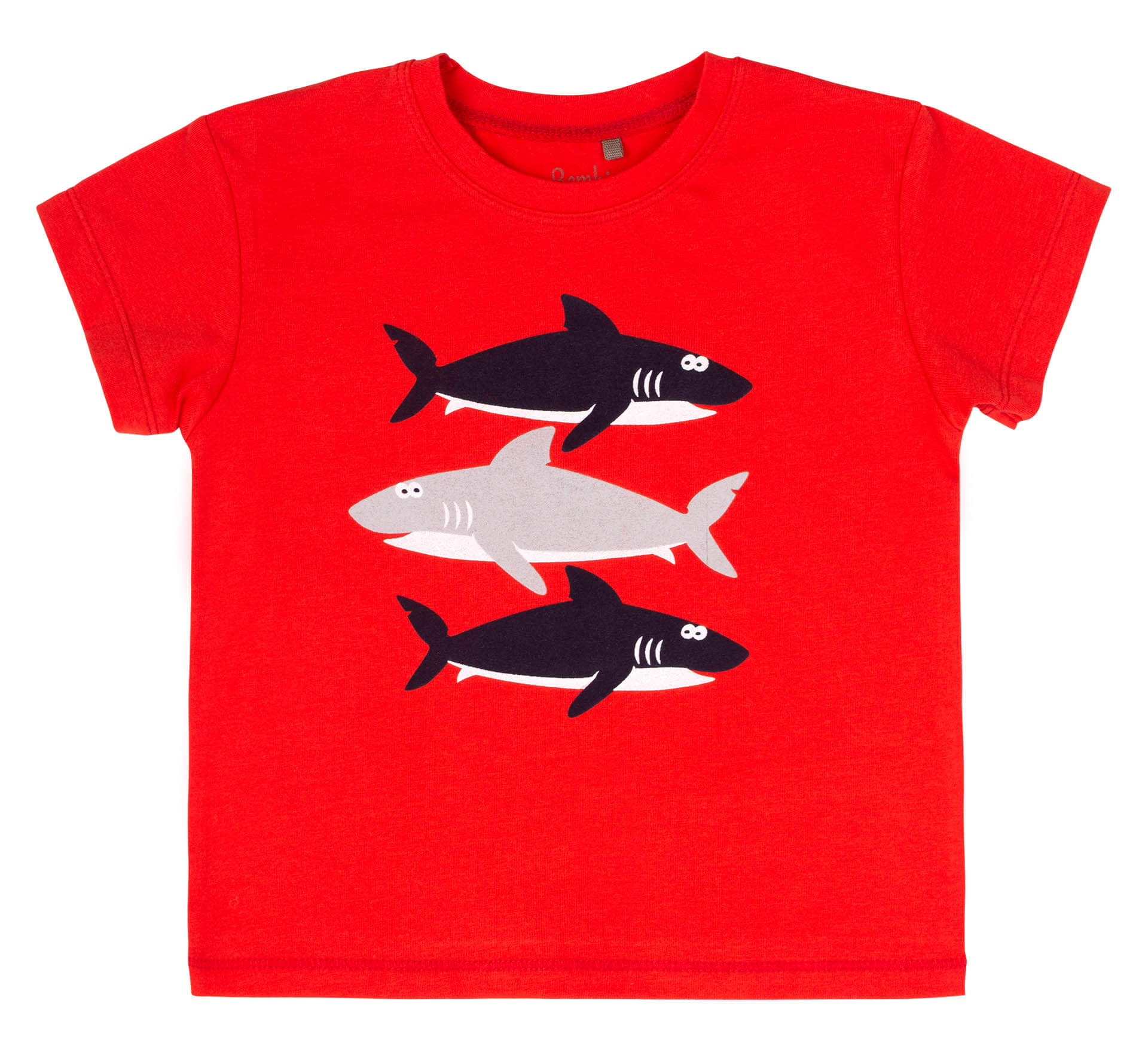 Детская красная футболка с принтом для мальчиков. Сшита из нежного приятного на ощупь трикотажа. Имеет классический короткий рукав, круглую горловину и свободный прямой крой. Удобная и стильная футболка малышам.