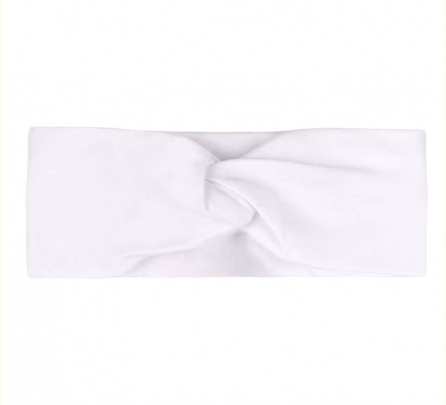 Детская белая повязка для девочек. Впереди имитация узелка. Детский головной убор сшит из эластичного хлопкового трикотажа. Станет отличным кокетливым дополнением детского гардероба.