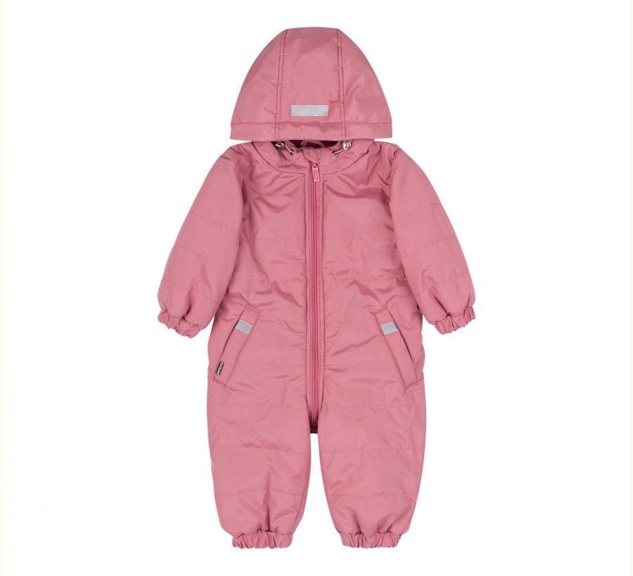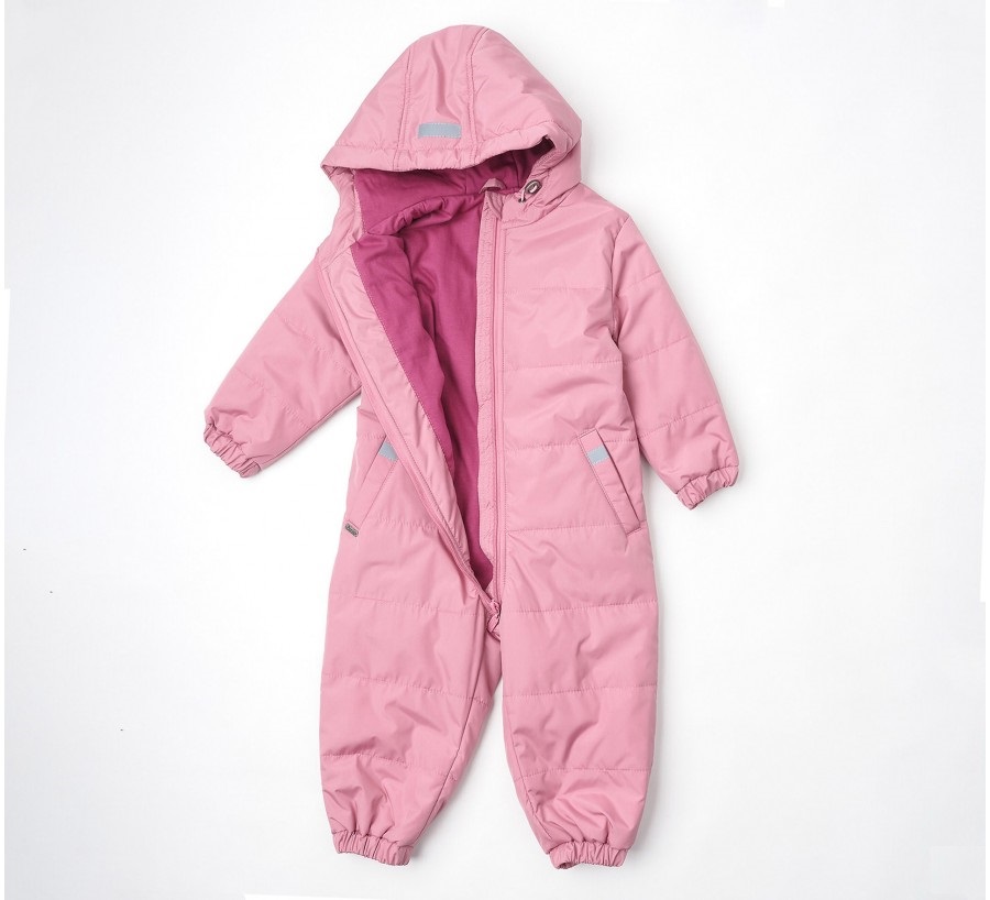 Осенний розовый детский комбинезон с капюшоном. Сшит из водоотталкивающей плащевки, полностью утеплен современным утеплителем и имеет подкладку из флиса. По бокам карманы. На карманах и капюшоне расположены светоотражатели. Рукав и штанина собраны по краю. Демисезонный детский комбинезон застегивается на замочек с защитой подбородка.