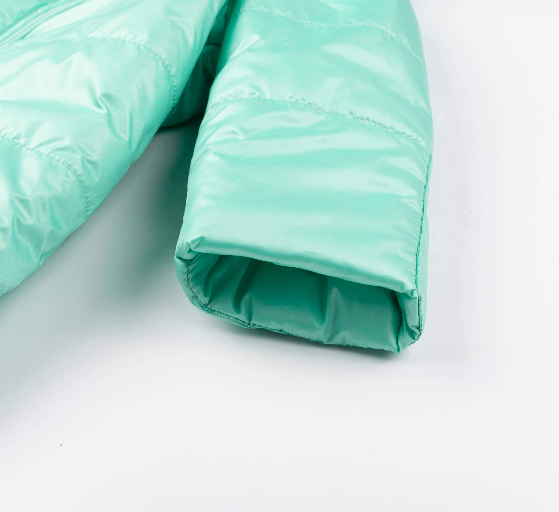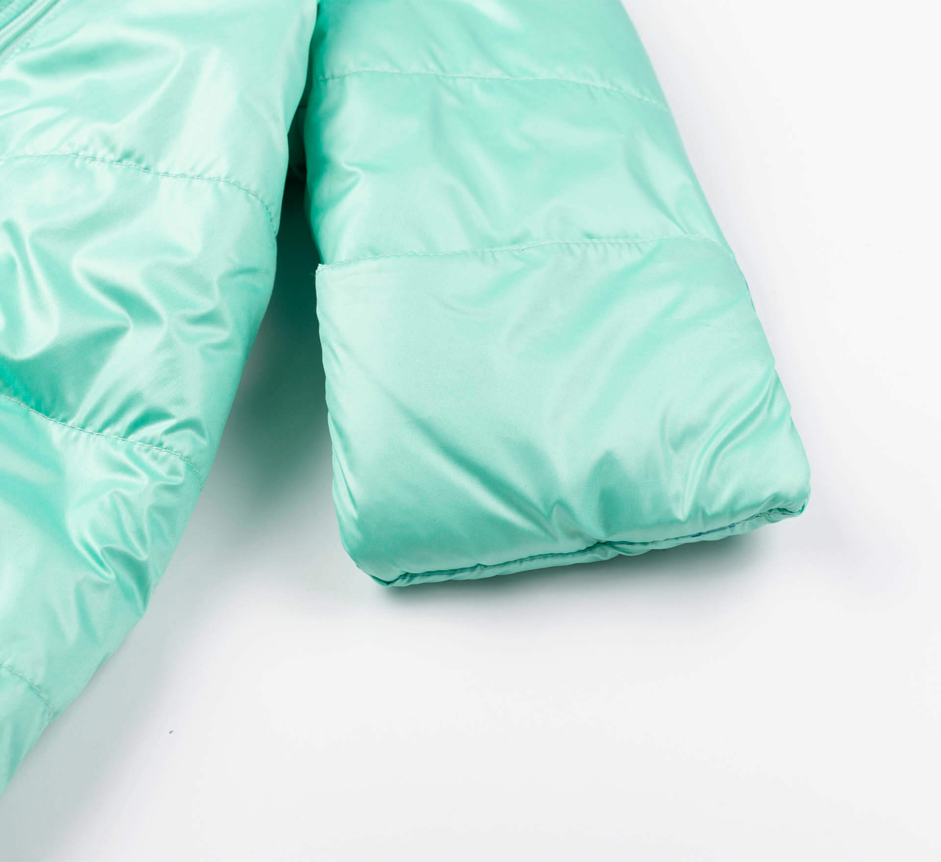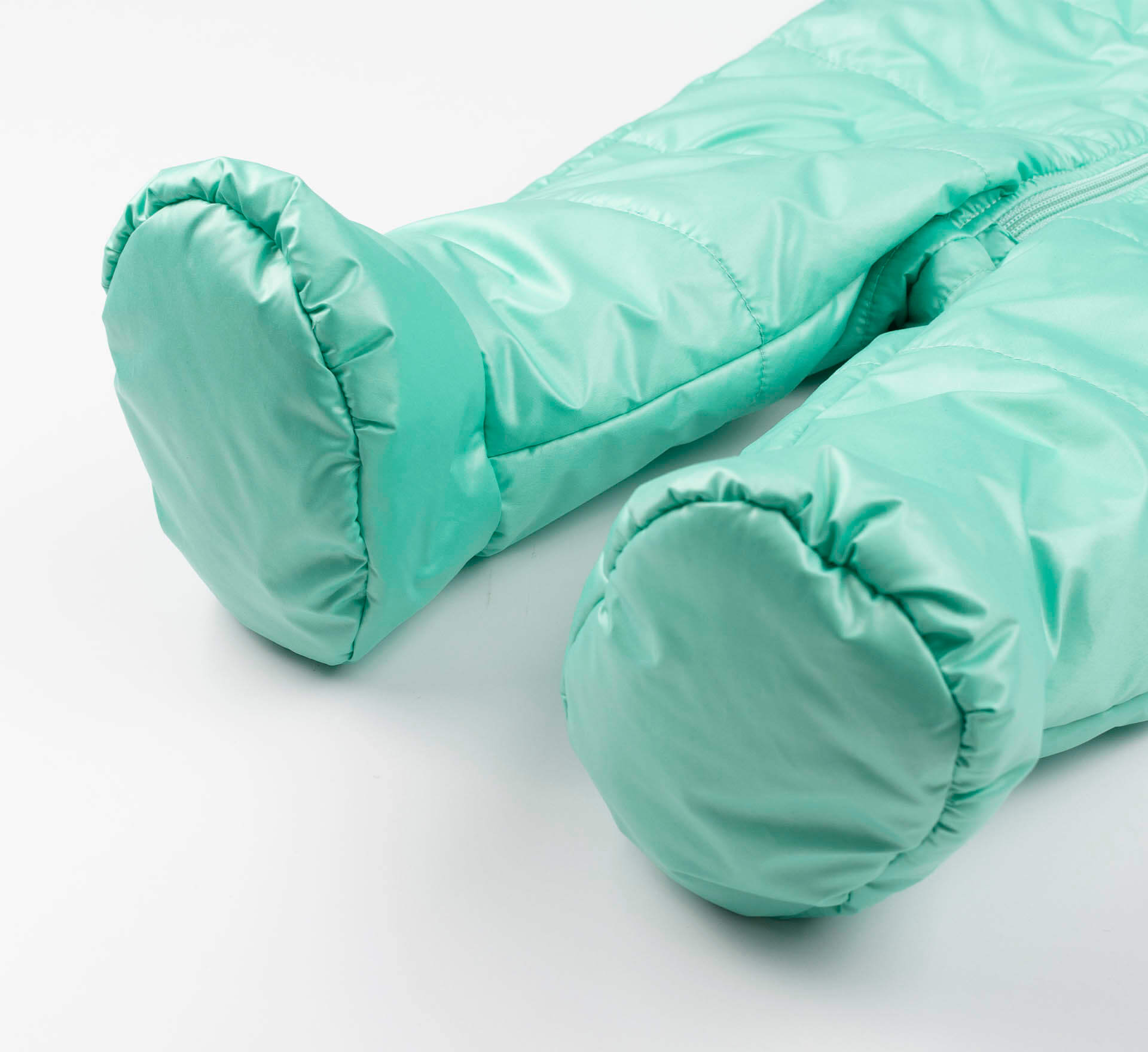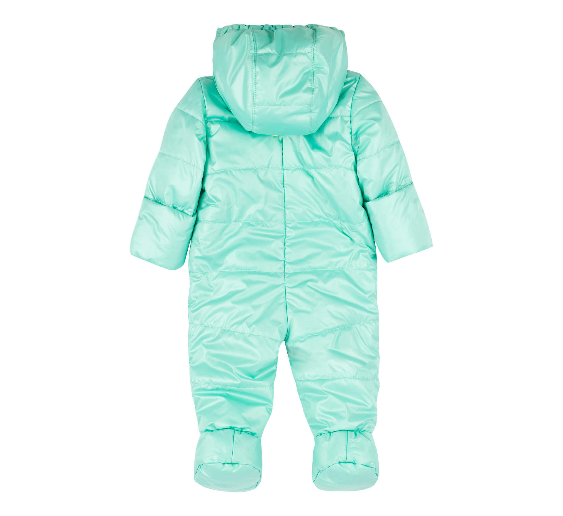 Осенний ментоловый комбинезон для новорожденных. Застёгивается на молнию. Имеет пришитые капчики, ножки закрыты. С капюшоном. На рукавах наши перчатки, которые можно отвернуть и тогда ручки открыты, или завернуть. Прекрасный утепленный демисезонный комбинезон для детей.