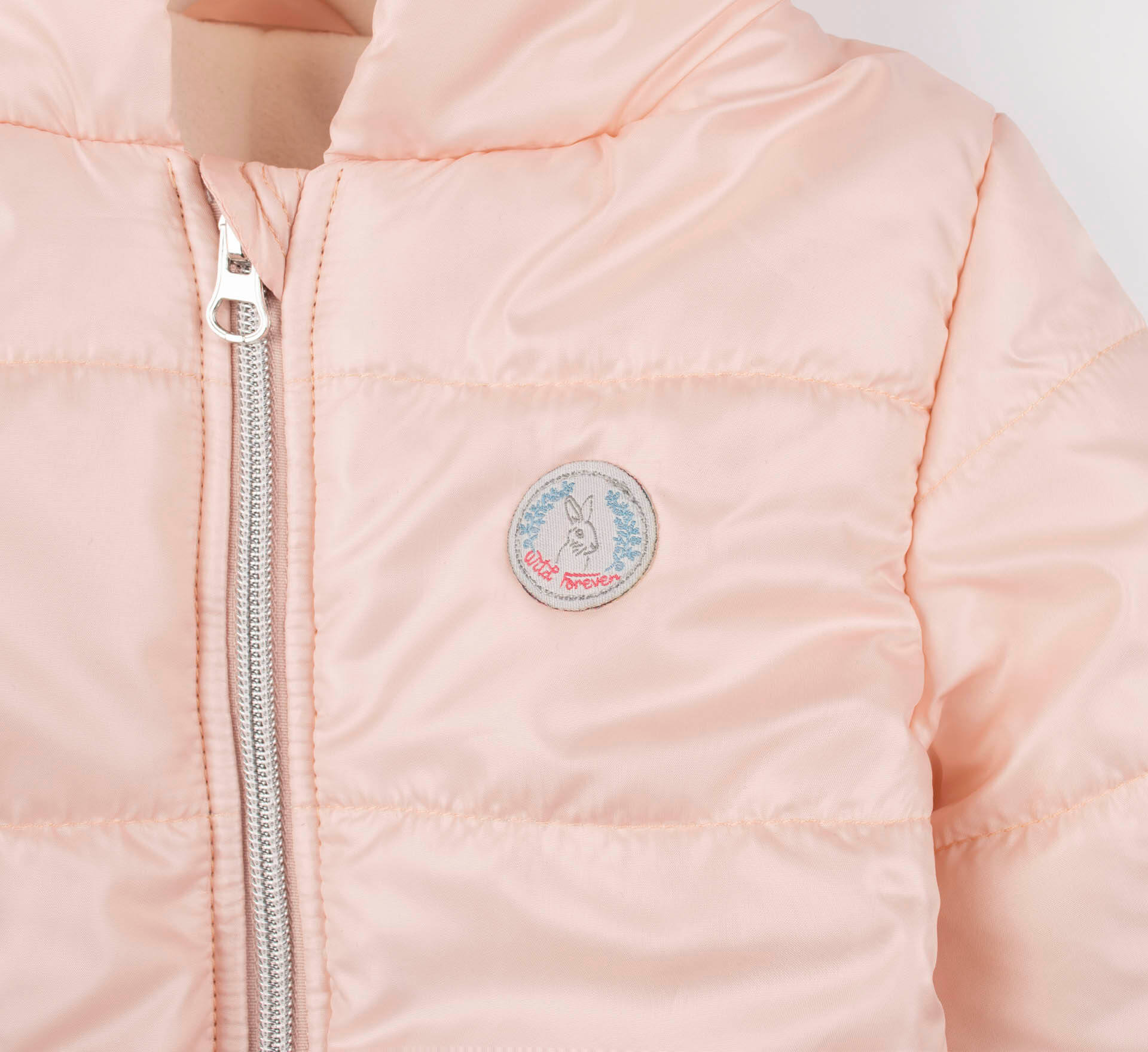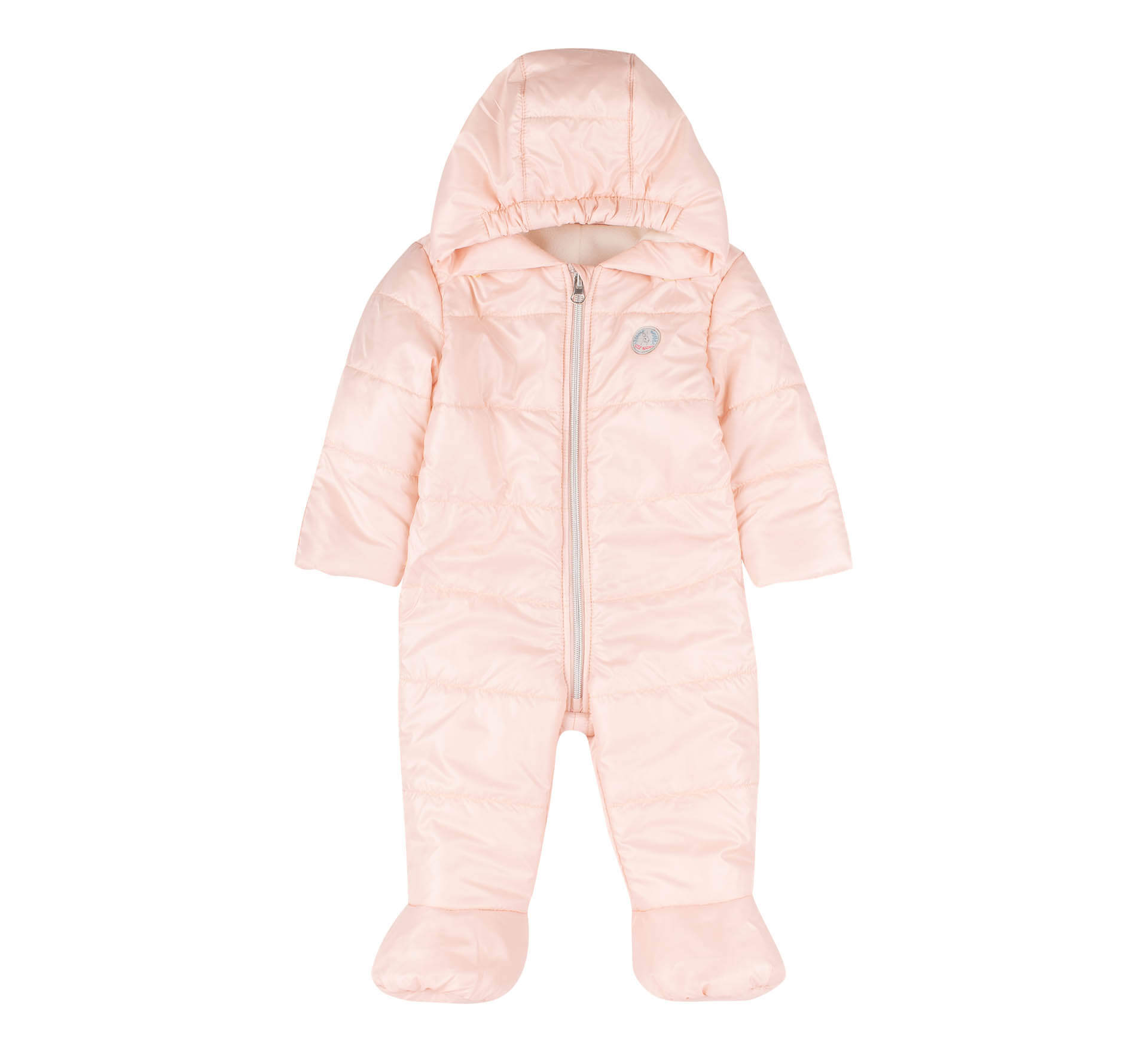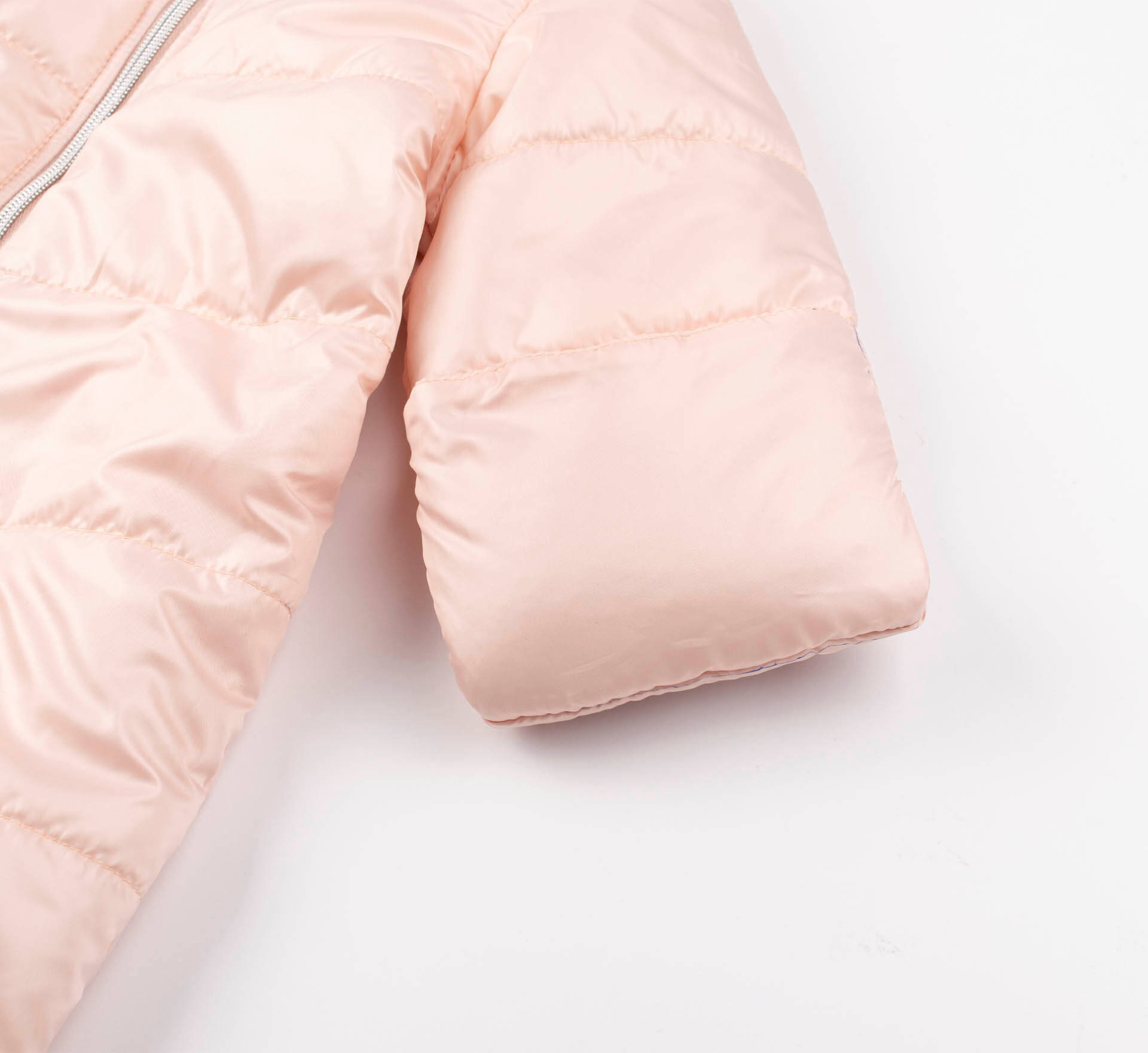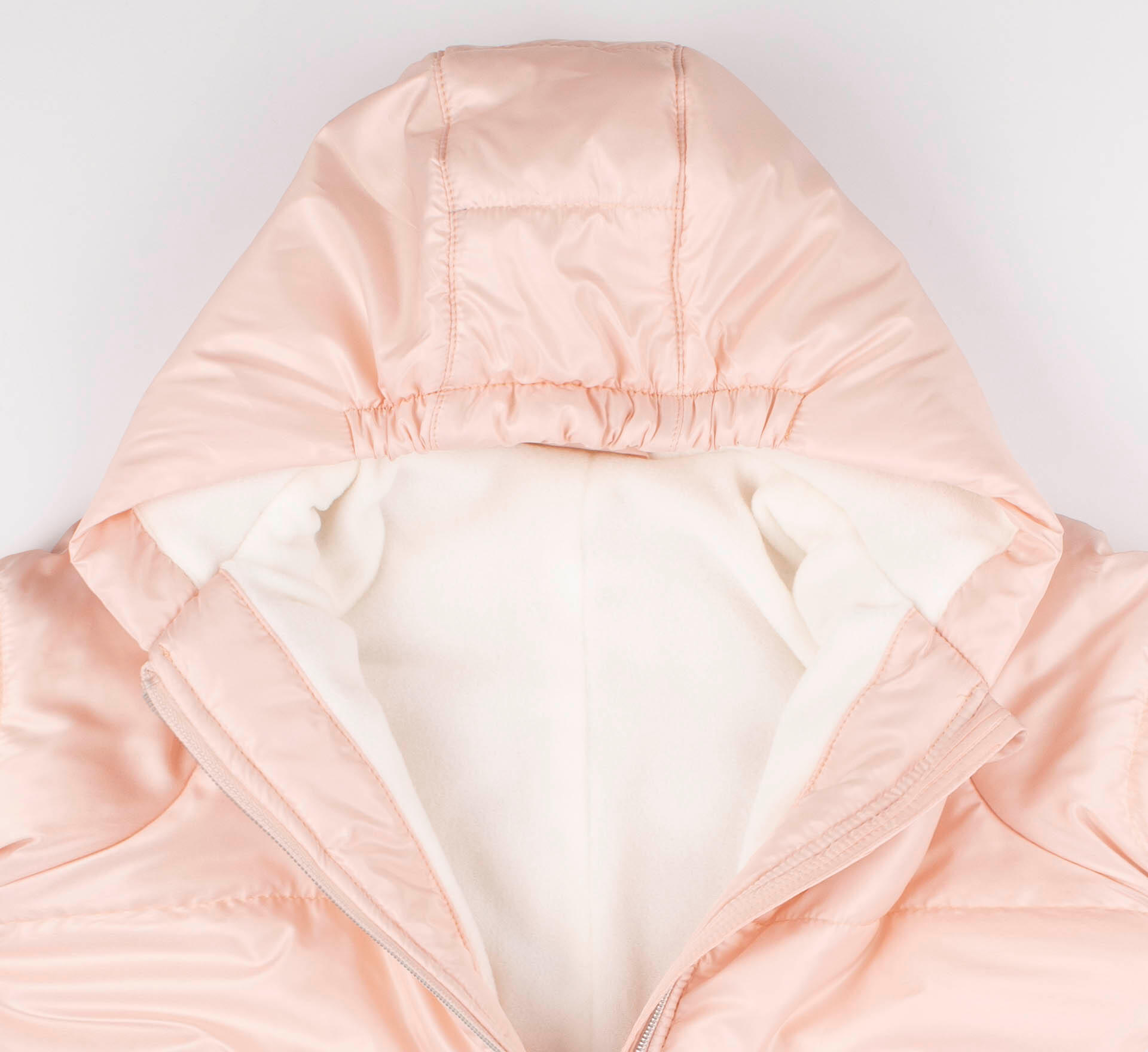 Осенний розовый комбинезон для новорожденных. Застёгивается на молнию. Имеет пришитые капчики, ножки закрыты. С капюшоном. На рукавах наши перчатки, которые можно отвернуть и тогда ручки открыты, или завернуть. Прекрасный утепленный демисезонный комбинезон для детей.