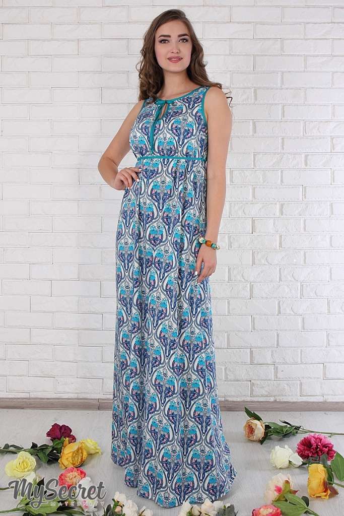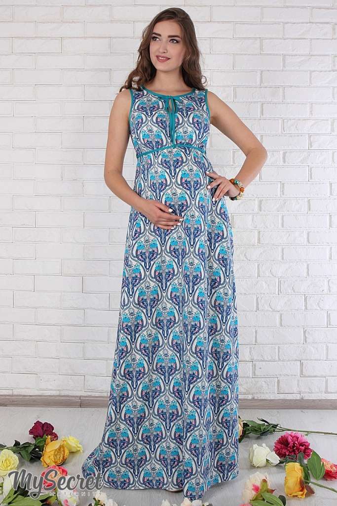 Основные характеристики сарафана Офелия TS для беременных и кормящих:Цвет: синие и зеленые листочки на молочном фоне. Состав: 100% вискоза. Длина по спинке (от 7-го шейного позвонка) в размере М: 120,2 см...