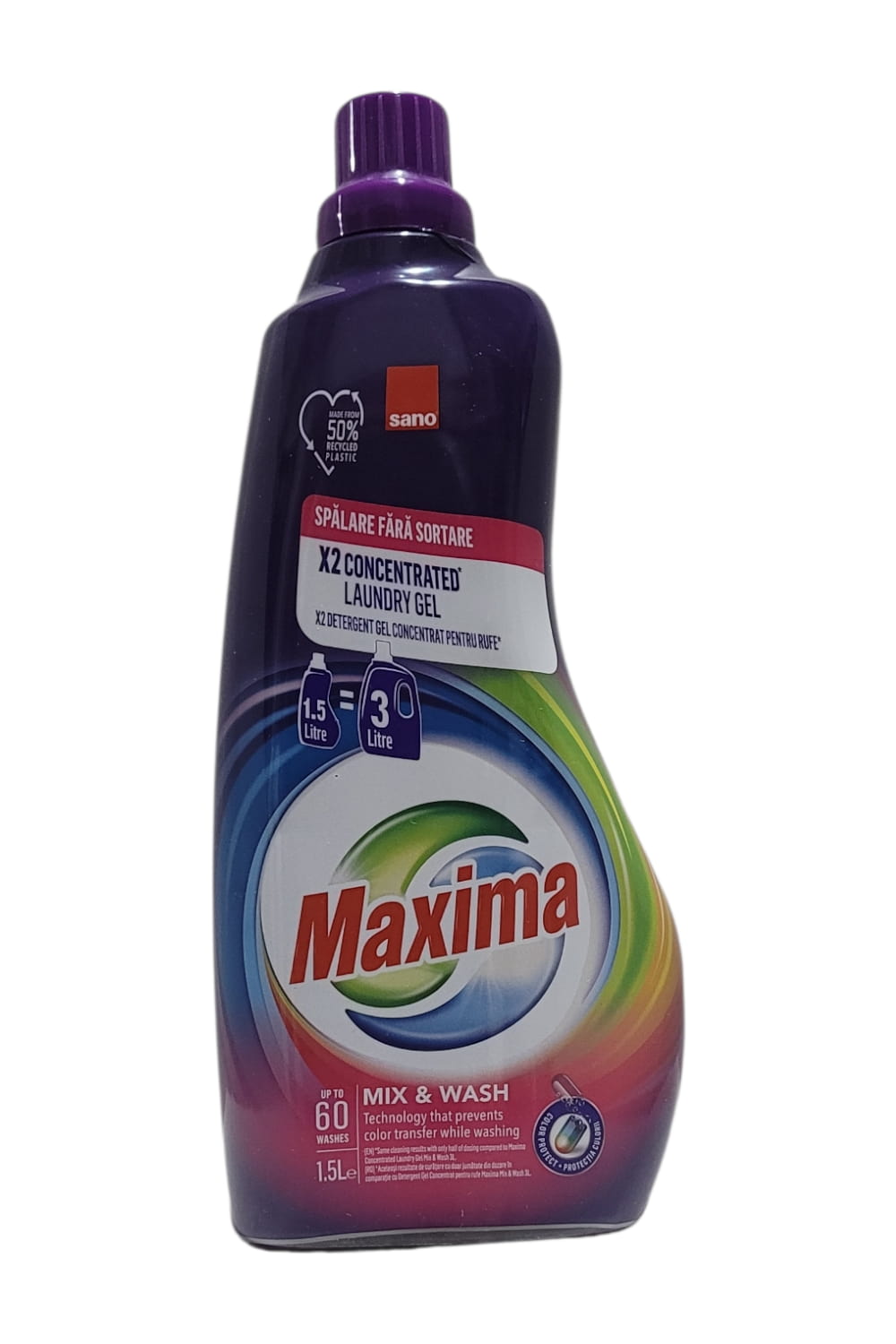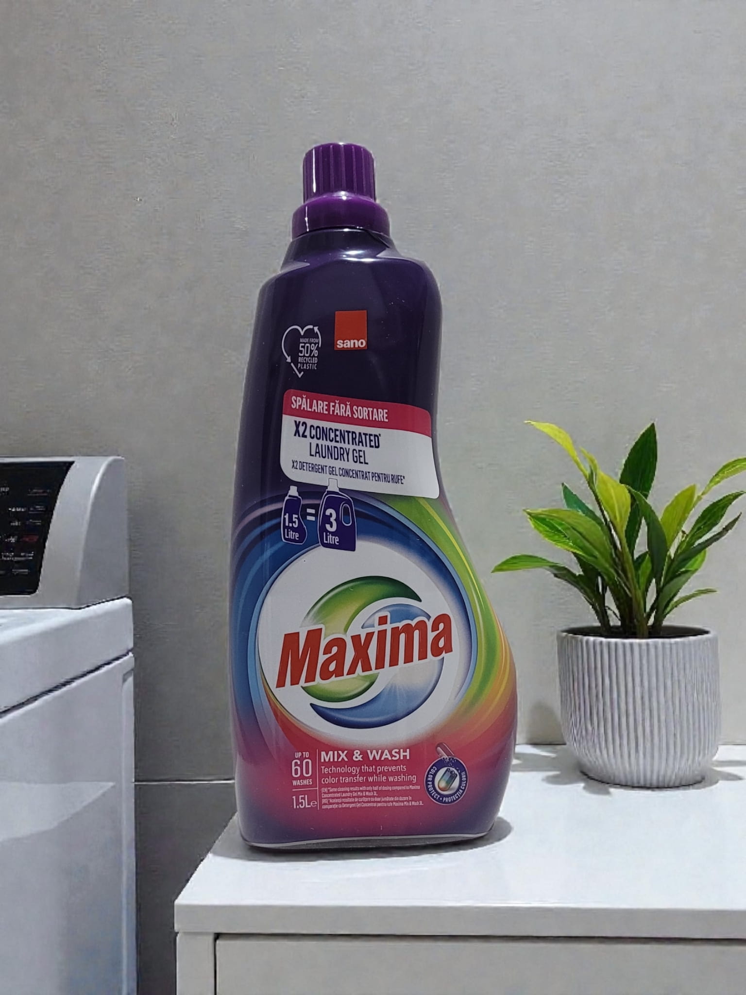 Концентрированный гель Sano Maxima Mix & Wash эффективно удаляет пятна, сохраняет цвет и подходит для всех типов белья. До 60 стирок, экономичный расход и универсальное применение каждый день.