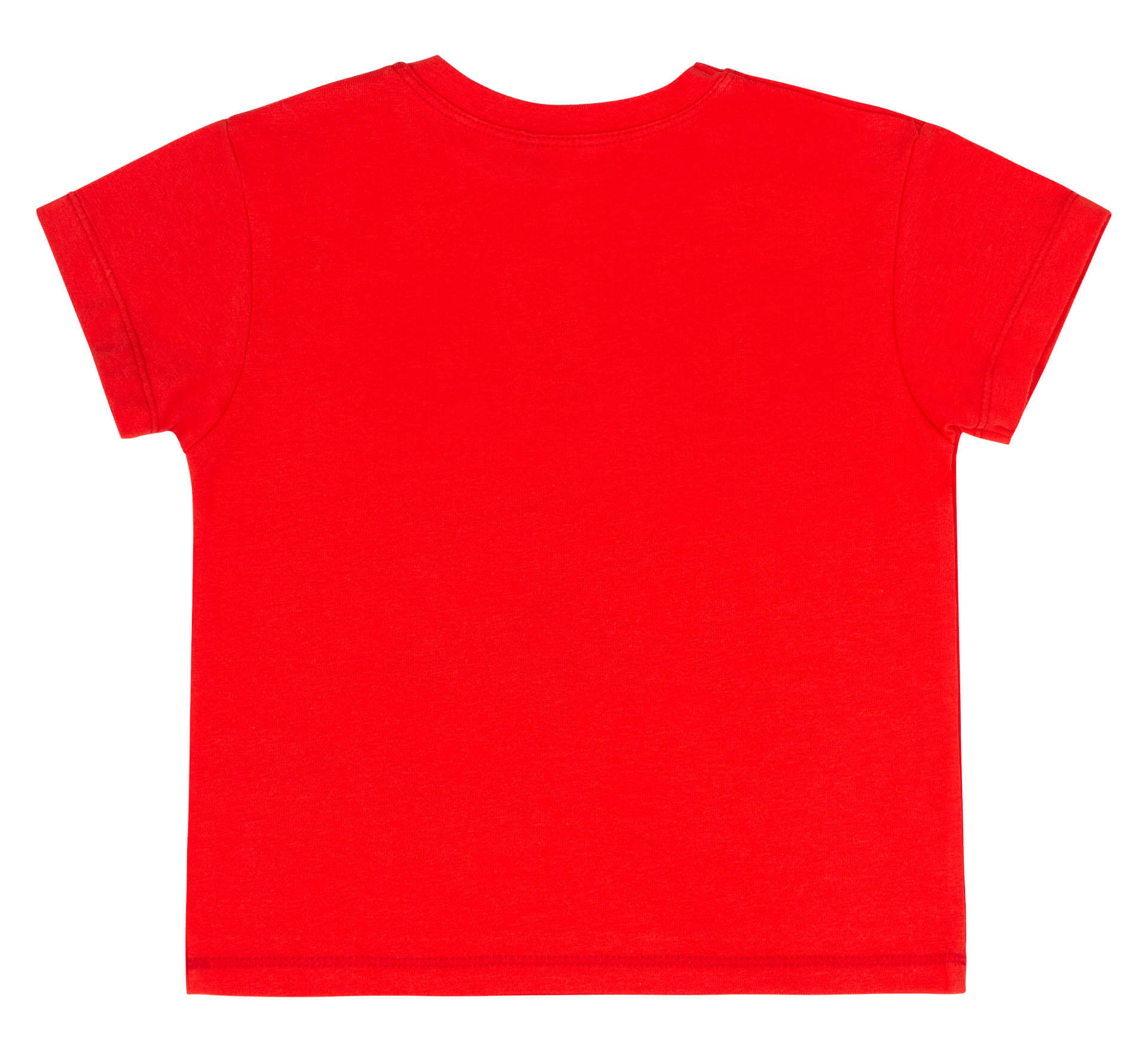 Дитяча червона футболка з принтом для хлопчиків. Пошита з ніжного приємного на дотик трикотажу. Має класичний короткий рукав, круглу горловину та вільний прямий крій. Зручна та стильна футболка малюкам.
