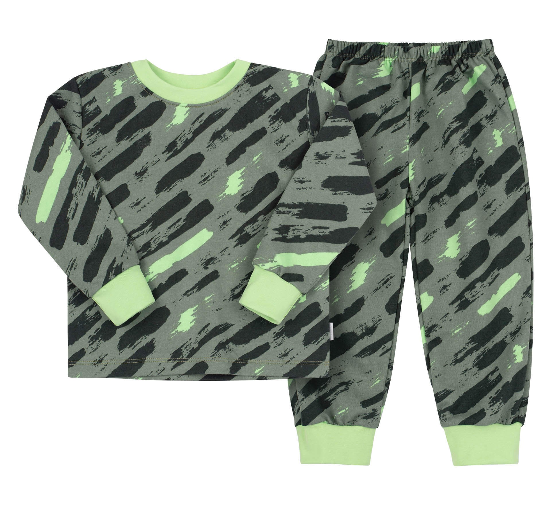 Тепла дитяча піжама хакі. Пошита з байки, теплого затишного матеріалу. Складається з кофти та штанів. Кофта з круглим вирізом горловини. Край рукава та штанів зібрані манжетами. Байкова дитяча піжама для гарних снів =)