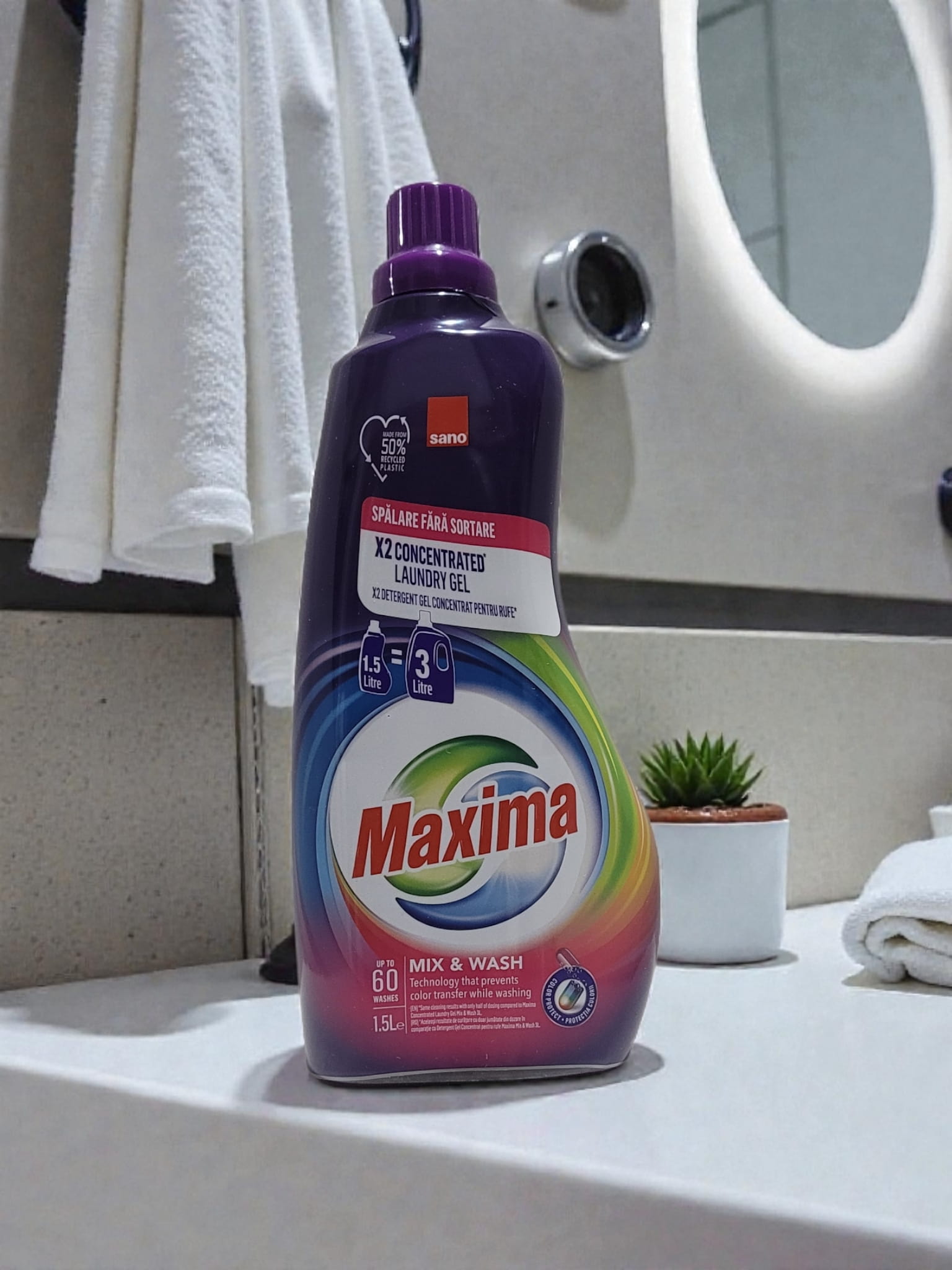 Sano Maxima Mix & Wash створює відчуття чистоти та домашнього затишку, адже білизна після прання має приємний аромат і свіжий вигляд. Засіб легко вимивається, не залишаючи слідів на тканині.