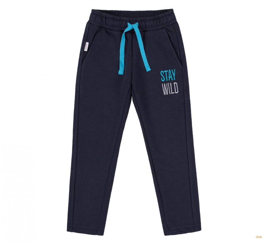 Сині теплі дитячі штани для хлопчика. Мають еластичний пояс та бокові кишені. Збоку прикрашені вишитим написом. Зручна посадка та теплий матеріал на флісі роблять їх незамінними для ігор у холодну пору.