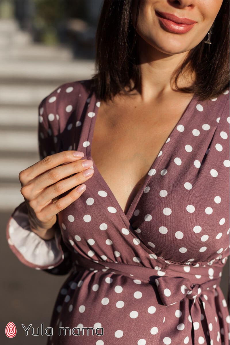 Стильне плаття у горошок для вагітних та годуючих матусь. Пошите з цупкого штапелю та має зручний фасон на запах. Універсальне: вагітність, годування та просто так!