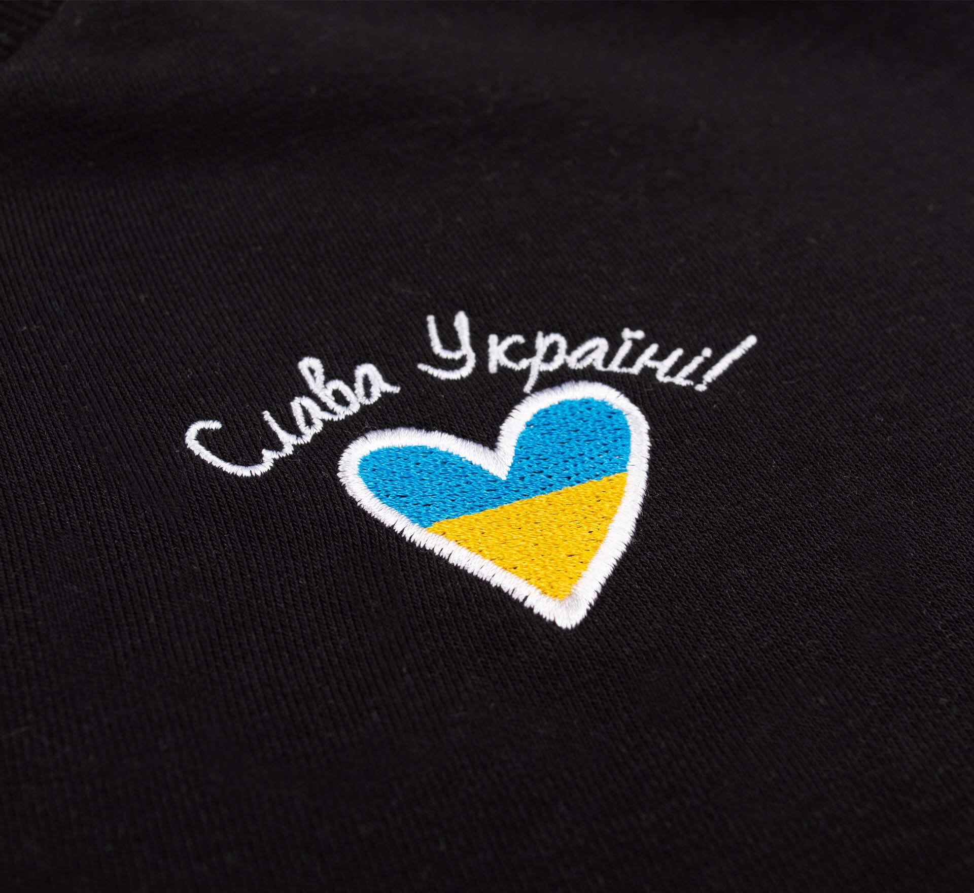 Універсальний патріотичний світшот чорного кольору з вишитим написом "Слава Україні" та жовто-блакитним сердечком. Світшот пошитий з цупкого трикотажу тринитка. Горловина кругла. Довгий рукав закінчується манжетою. Кофта має вільний крій та спущену лінію плеча. Модель виконана у широкій розмірній лінійці: від дитячого 116го розміру - до дорослого 170-го. Розмір обирайте по зросту.