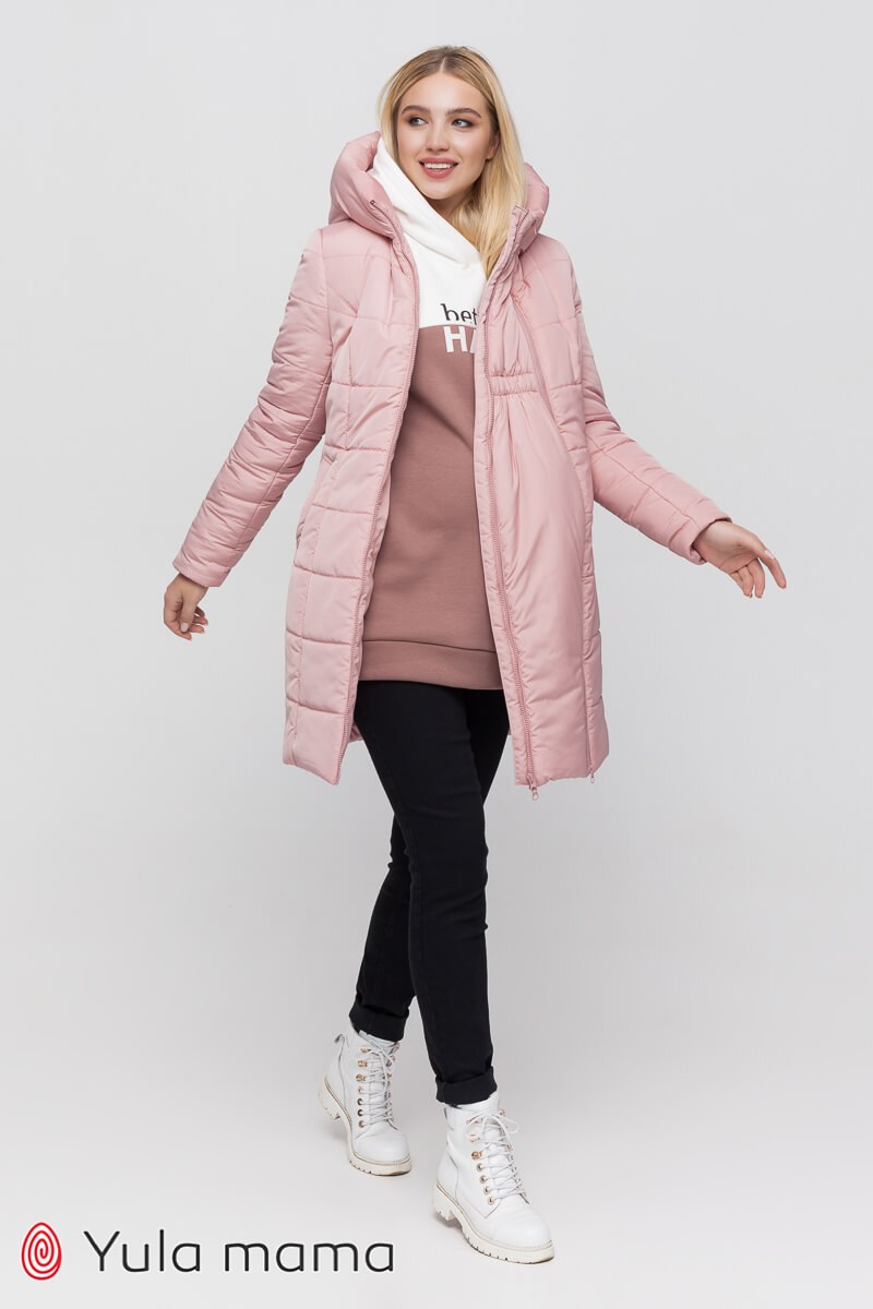 Рожеве зимове пальто 2 в 1 для вагітних зі вставкою для животика. Вставка знімна, потім можна відстібнути і носити пальто далі. Пальто тепле, з наповнювачем силіконізований синтепон 210 мг (рекомендований температурний режим до -15°С). Крій напівприлеглий. Пальто з бічними кишенями та зручним капюшоном. Кишені з підкладкою з флісу, щоб Ваші ручки були у теплі. Універсальне тепле пальто для майбутніх мам.